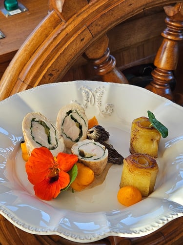"Relish gourmet meals crafted daily by our onboard chef, paired with fine wines from Burgundy and Jura."